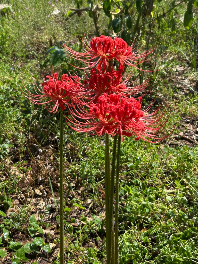 Normally I am not drawn to “fancy”, but Spider Lilies are different. Their fanciness comes from a place of the heart. The bold flower is so vivid, it can be spotted from anywhere in the garden. One single Spider can rise tall and demand attention from onlookers, but humble enough to allow other flowers to bloom beautifully the rest of the year. Spiders aren’t like Bougainville, which take over the conversation. Spider Lilies are content to shine for a few weeks, then let others do the same. Spiders compliment other plants without stealing the joy.
