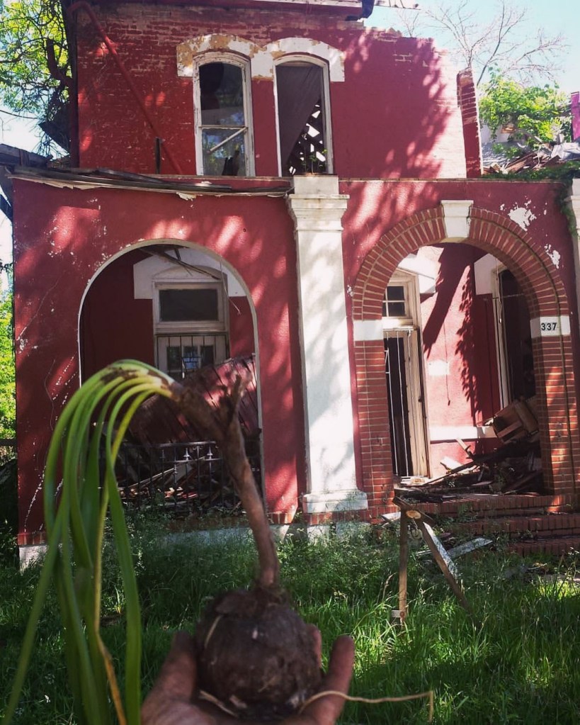 There are a lot of meaningful endeavors in life, but saving Miss Margaret’s gardens is definitely one of my favorites. I’m honestly not sure why I’m so passionate about old flower bulbs, but the only way to explain it is that it’s in my blood. My Dad loved old architecture and old photos. As a child, my Dad instilled a profound understanding of preservation. A deep desire to save something that will be lost. When I see bulb foliage, there’s a sudden urgency to hop barbed wired fences with a shovel. My son even bought me a mini shovel to carry around in my car. I must admit, my little digging passion is just weird. I can’t explain it. I’m just compelled to hop that fence. I feel like an addict, desperately seeking my next fix of old rotting houses and “No Trespassing” signs. If I had a dollar for every time my family told me “We aren’t bailing you out of jail” I’d be rich. There are countless reasons why I shouldn’t do what I do, and only one reason why I should….the beautiful 100 year old Oxblood Lily bulb that I’m holding in my hand.