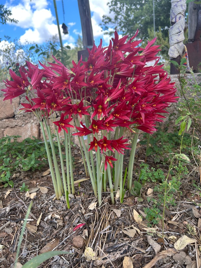 Fast forward to my early twenties. I was now in central Texas during Fall. Need I say more? It rained, and what seemed like overnight, Oxblood Lilies popped up all over town. I’ve never been the same since. Oxblood lilies seemed to grow wild where my in-laws lived, and I began to ask around about the red lilies growing everywhere.
