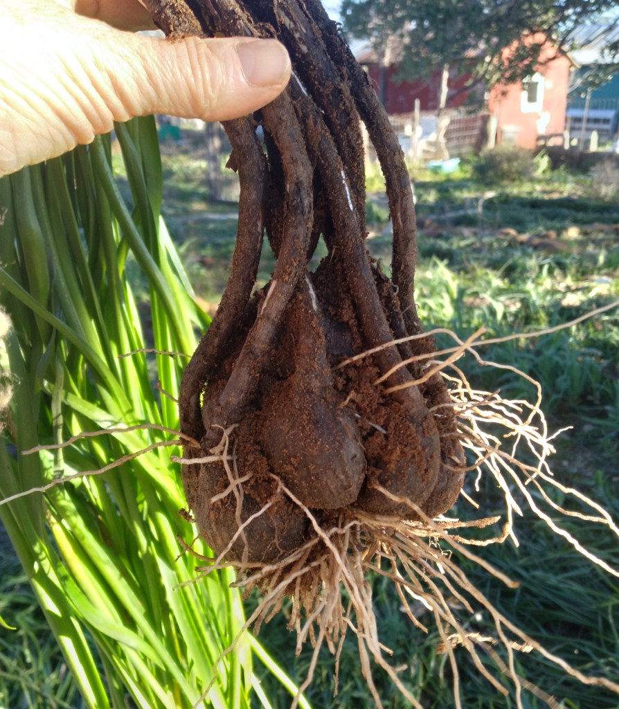 As I dug the Coral Vine, I stumbled upon a little clump of bulbs near the Coral Vine. When bulbs are damaged during a house teardown, I stick them in any open spot in the garden, and simply hope for the best. If an Oxblood Lily is damaged, the bulb will actually revive itself through creating baby bulbs in it’s place. The parent bulb becomes “a giver” to preserve the bulb’s heritage. In this case, 15 tiny little baby Oxbloods. I love it. I love the fact that even plants take care of their own. I love the fact that old heritage bulbs will outlive you and I, and the beauty of the established flower garden keeps on giving. I love the fact that the preservation of these heirloom beauties is never in vain. When I’m long gone, these flower bulbs will remain, blooming happily for generations to come.