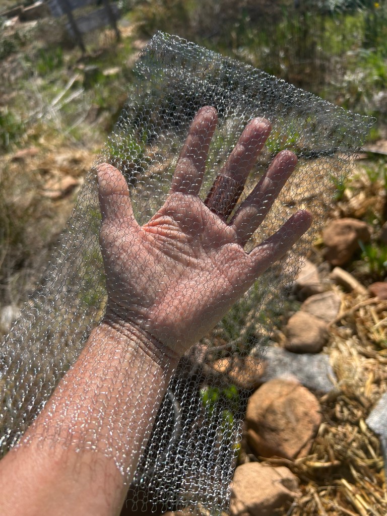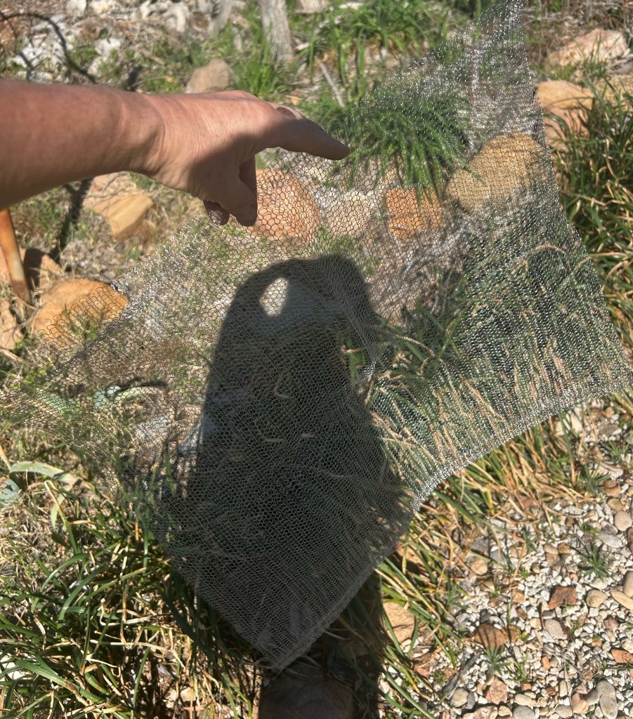 Yesterday was the day I decided to try out my gopher baskets. I was excited to plant some Antique Roses, and had not planned on moving any existing plants. Gardening-Fate, otherwise known as ADHD, had other plans. While relocating the large rock on the pathways to other locations, which I do at least once a season for no reason, I soon discovered that my Pink Spider Lilies were looking a bit droopy. Definitely not normal for this time of year. I gave them a drink and sure enough….a d&@!m gopher hole.